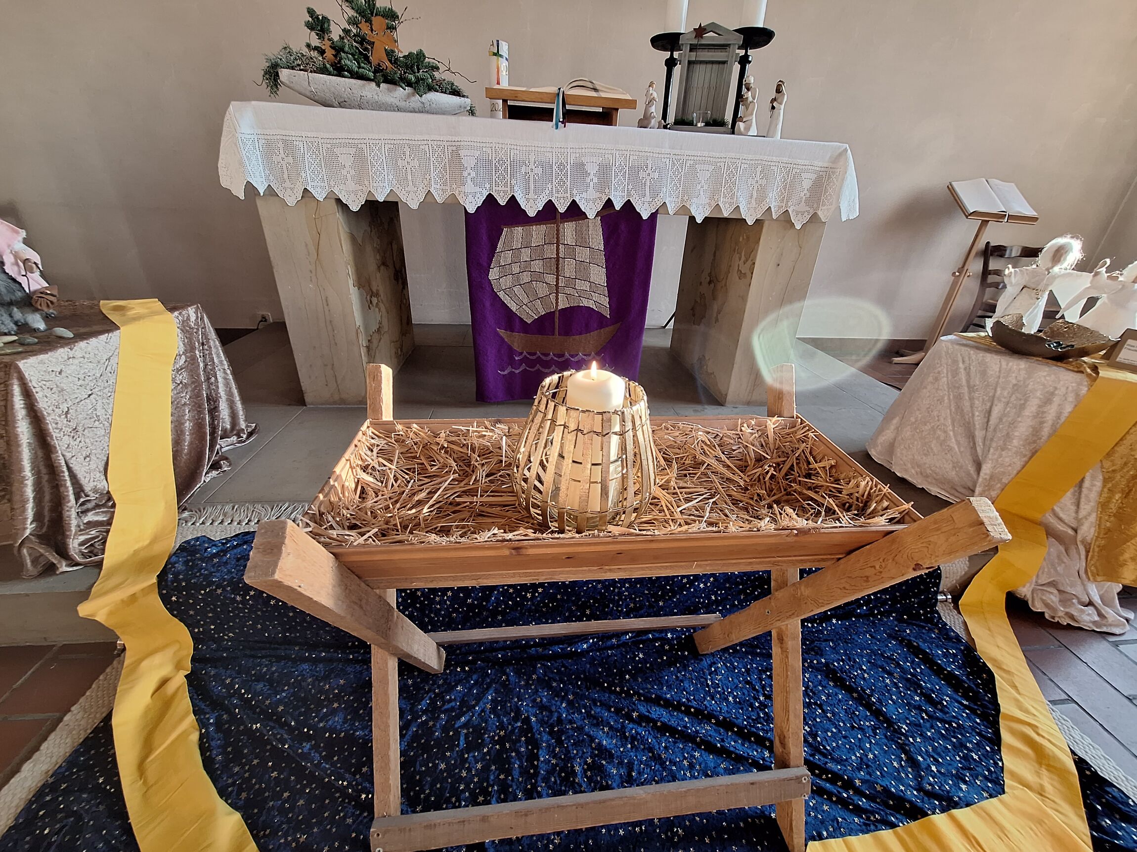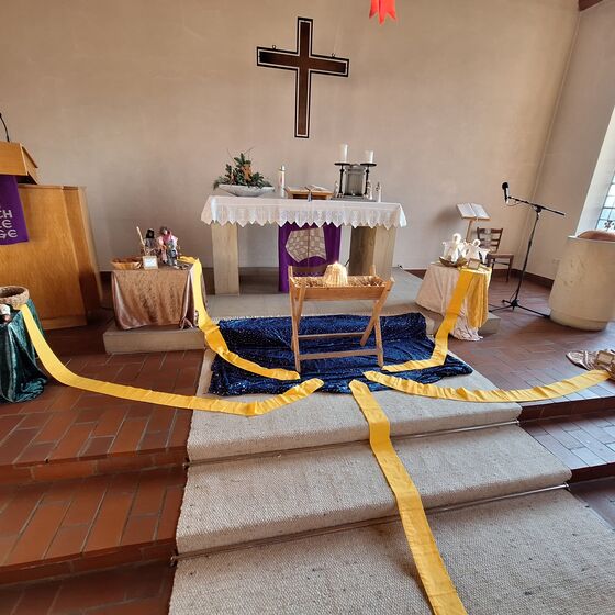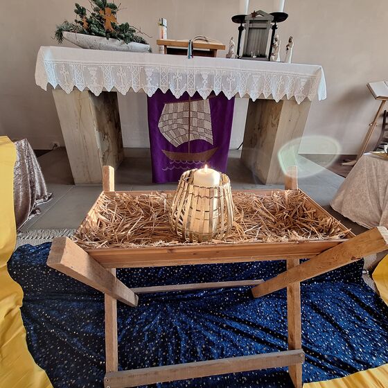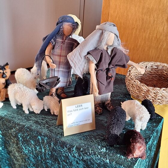 An einzelnen Stationen im Altarraum gab es die Gelegenheit den Personengruppen nachzuspüren, die sich vor etwa 2000 Jahren aus unterschiedlichsten Gründen auf den Weg nach Bethlehem gemacht haben. Ein beschwerlicher und ungewisser Weg war es. Doch was alle Personen im Stall an der Krippe erlebten, hat das eigene Leben vollständig verändert. Mit Sinn, Hoffnung, Freude und innerer Gewissheit, von Gott geliebt und gesehen zu sein – immer und überall, sind sie in den Alltag und die Heimat zurückgekehrt.